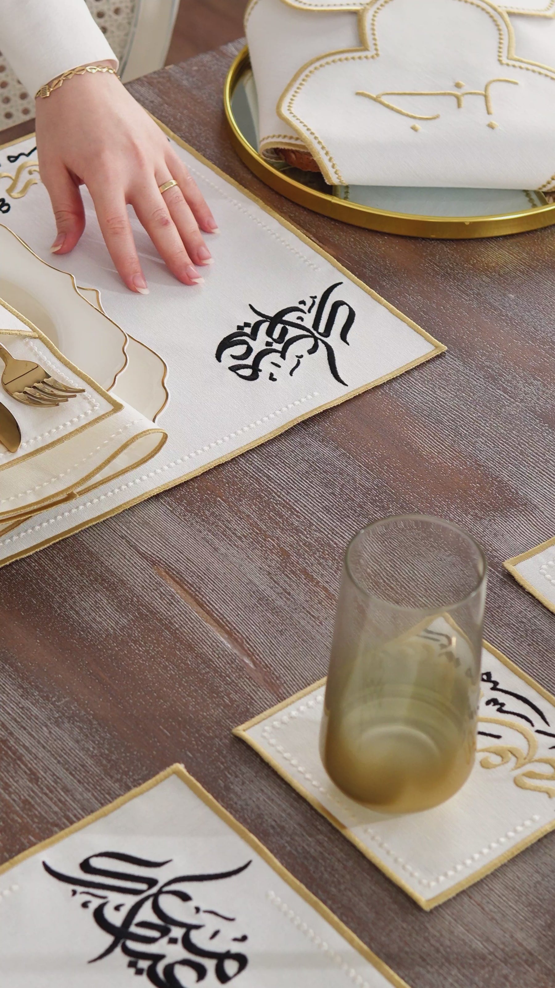 Eid Saeed Design Gold and Black Placemat Set - Waterproof Fabric - 6 Persons - 24 Pcs. Full Set