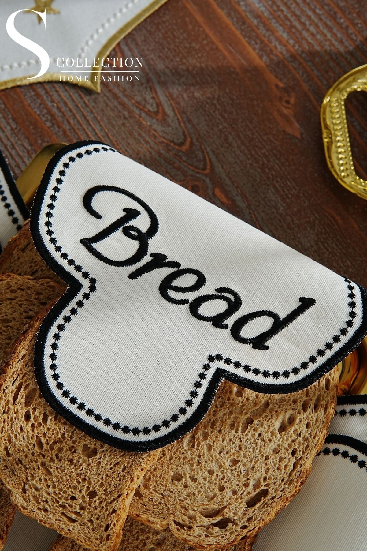 منديل سلة خبز - تصميم كلاود - قماش مقاوم للماء - تطريز اسود