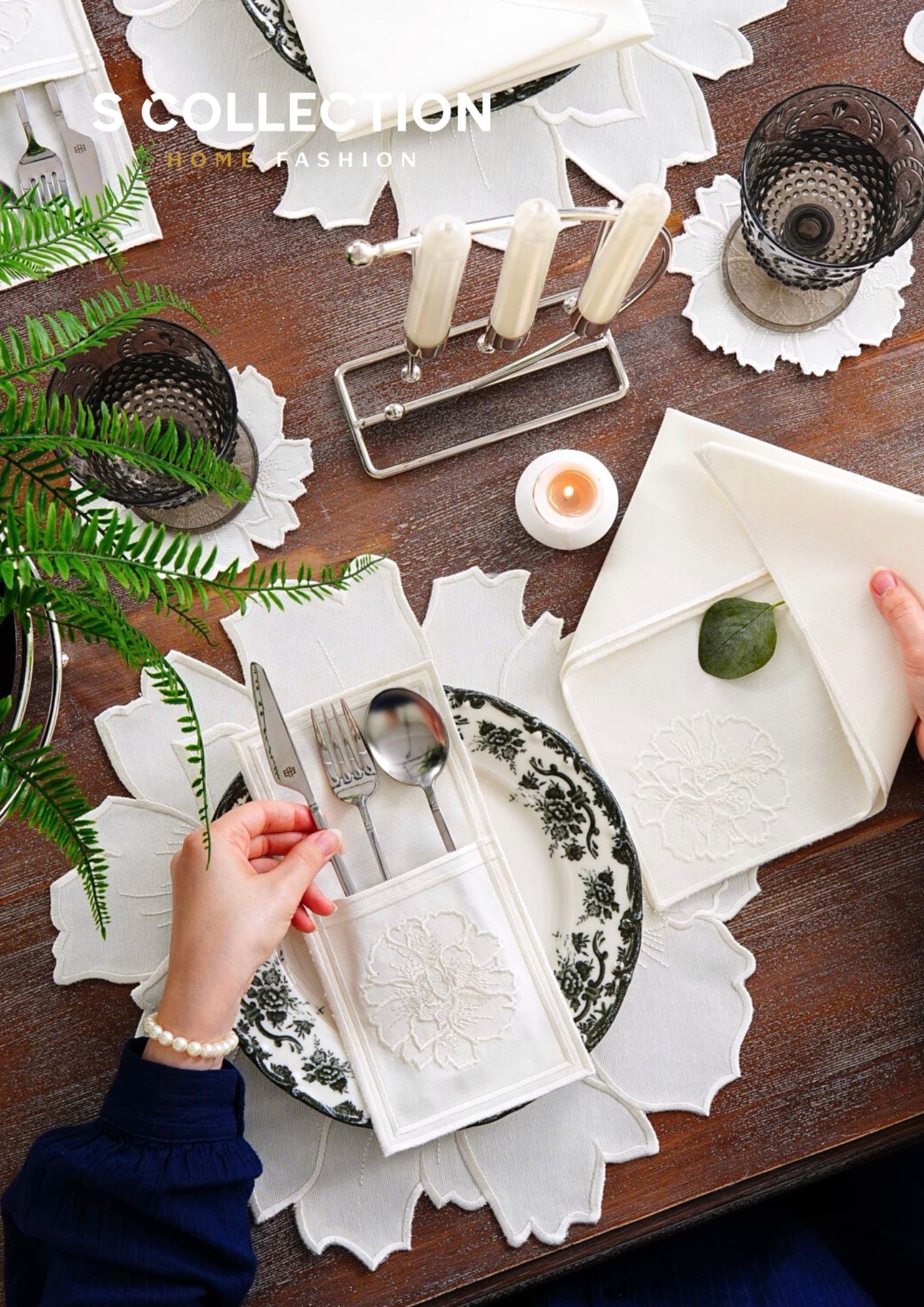 تجسيد راقٍ لفنّ الحرفية الرفيعة — استكشف مجموعتنا الجديدة من مفارش الطاولة المطرّزة، حيث يلتقي التصميم الكلاسيكي بالأناقة العصرية الهادئة.