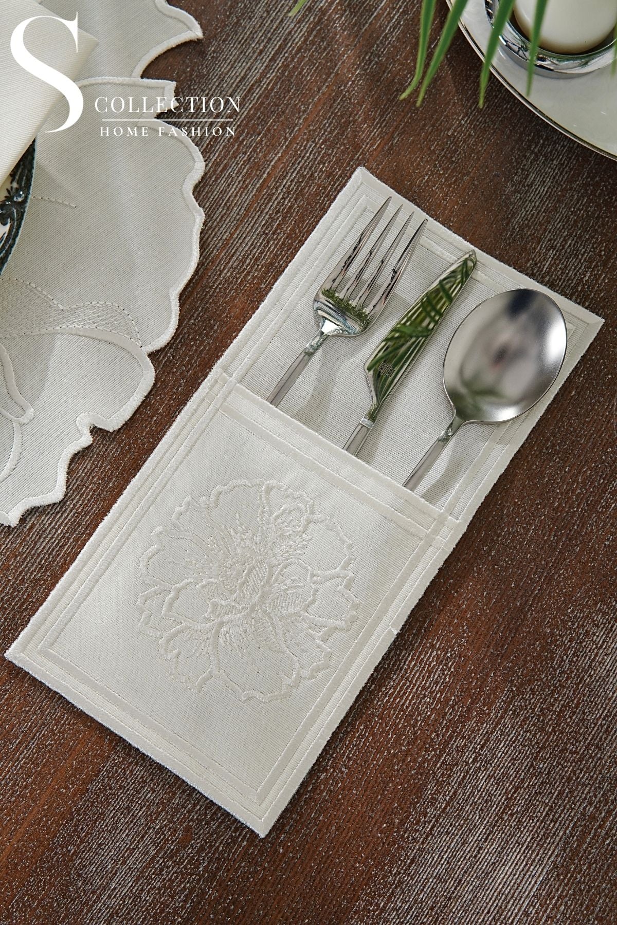 • ٦ جيوب ادوات مائدة مطرزة ١٢ * ٢٥ سم