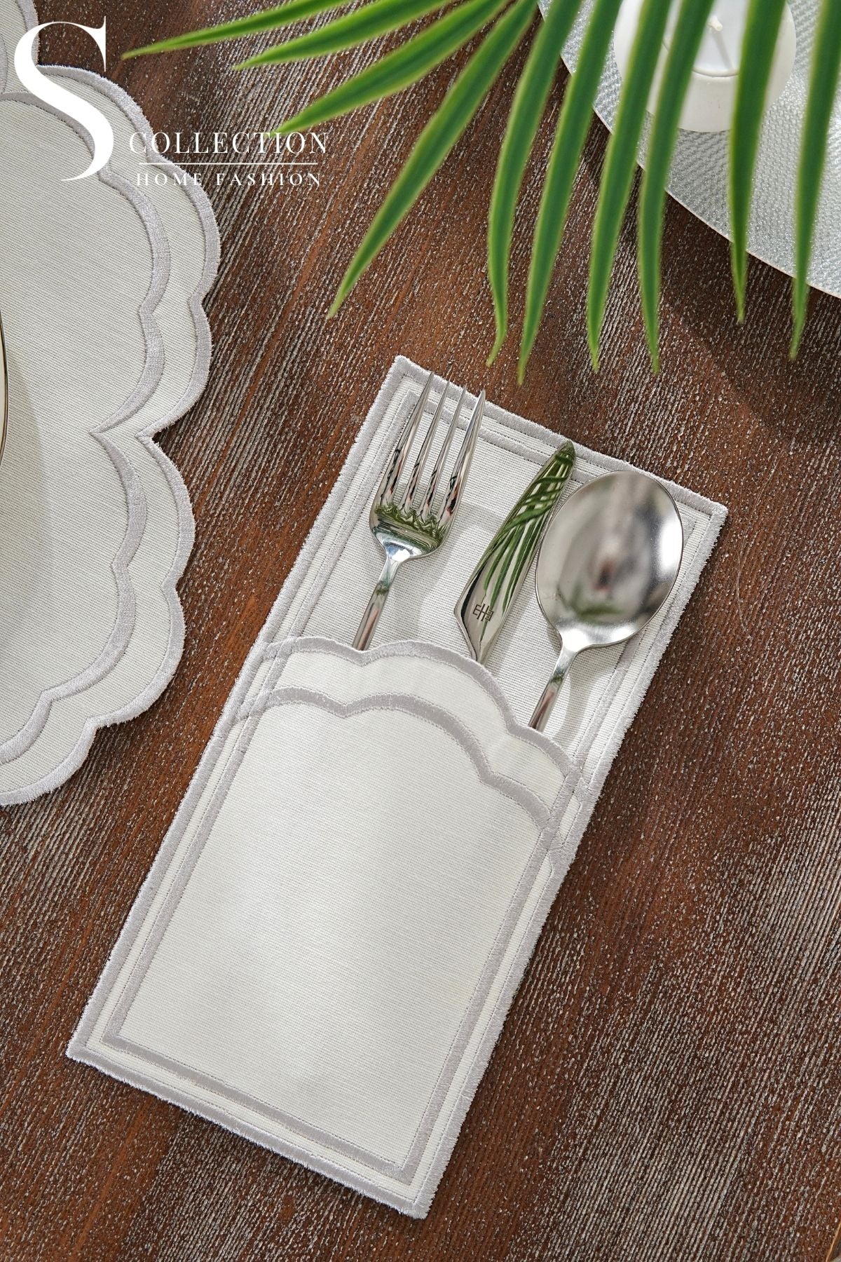 • ٦ جيوب ادوات مائدة مطرزة ١٢ * ٢٥ سم