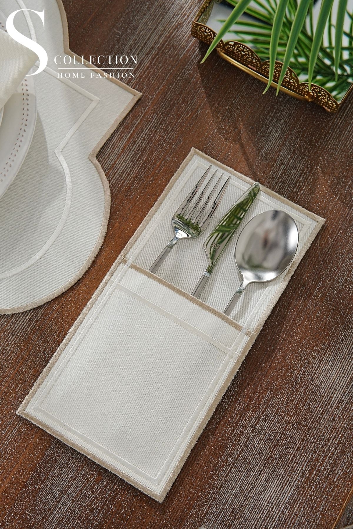 • ٦ جيوب ادوات مائدة مطرزة ١٢ * ٢٥ سم