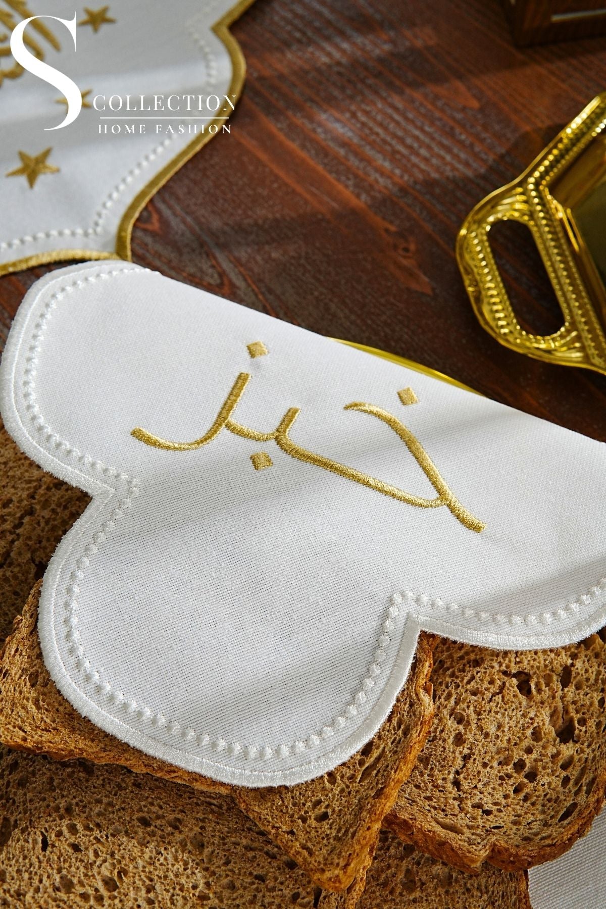 منديل سلة خبز - تصميم كلاود "خبز" - قماش مقاوم للماء - تطريز اوف وايت وذهبى