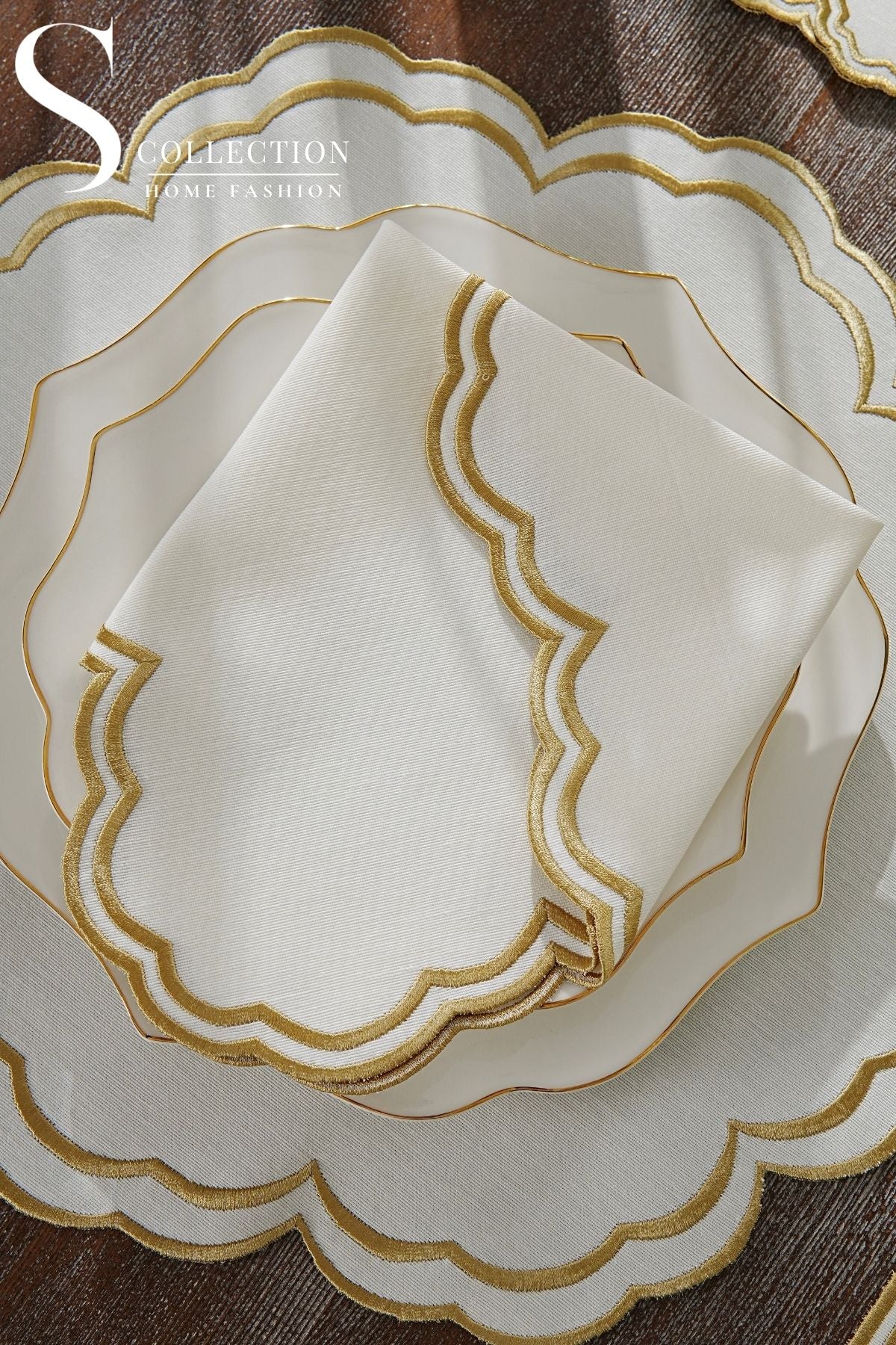 طقم مفارش سفرة - تصميم جوري - تطريز ذهبى - قماش مقاوم للماء - ٦ اشخاص - ٢٤ قطعة - طقم كامل