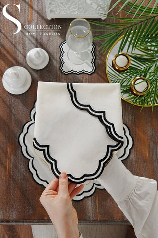 Jory Black Design Placemat Set - Waterproof Fabric - 6 Persons - 24 Pcs. Full Set