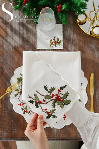 Elise Design Cocktail Napkin - Waterproof Fabric - Red Embroidered