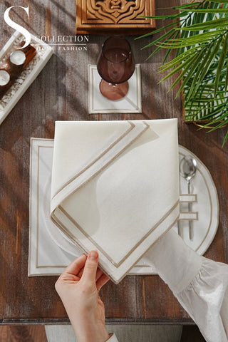 Ramadan Dome Design Gold and Off White Placemat Set - Waterproof Fabric - 6 Persons - 24 Pcs. Full Set