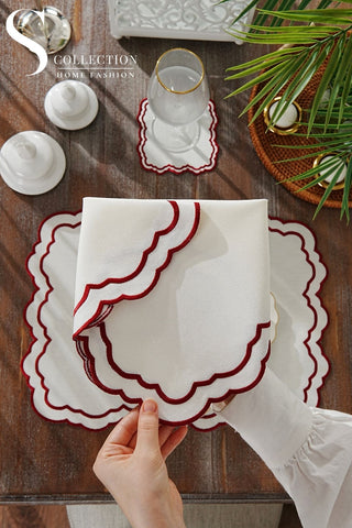 Gabriel Burgundy Design Placemat Set - Waterproof Fabric - 6 Persons - 24 Pcs. Full Set