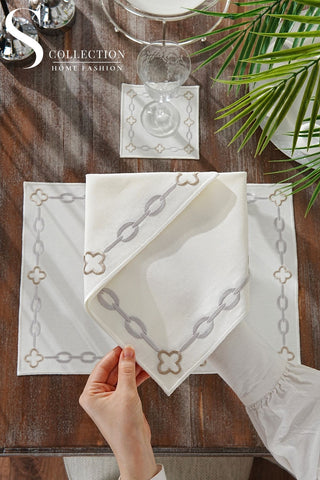 Cadena Gold Border - Silver Design Placemat Set - 6 Persons - Waterproof Fabric - 24 Pcs. Full Set