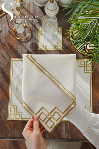 Cadena Silver Border - Gold Design Placemat Set - 6 Persons - Waterproof Fabric - 24 Pcs. Full Set
