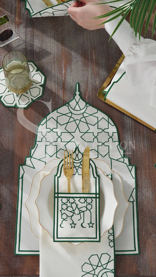 Elevate your Ramadan dining experience with our meticulously crafted 26-piece placemat set, designed to bring elegance and harmony to your table.