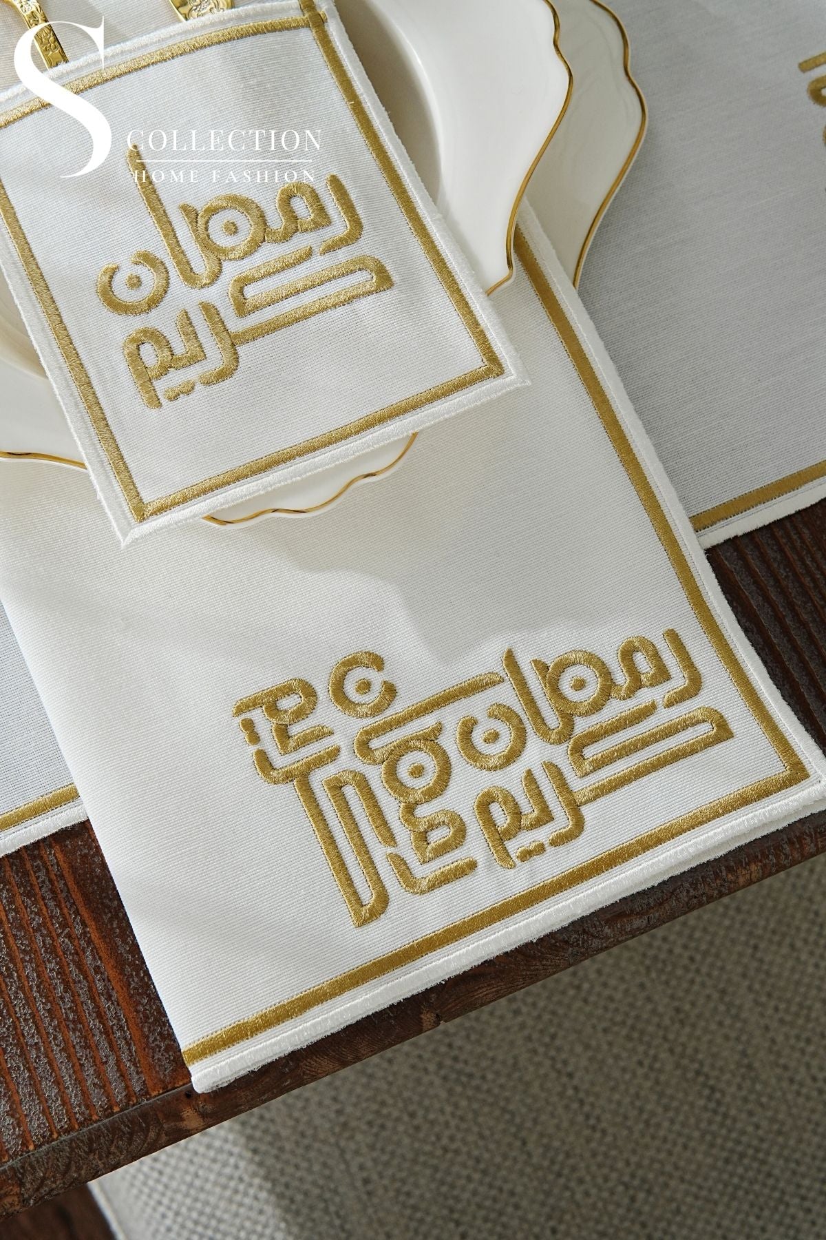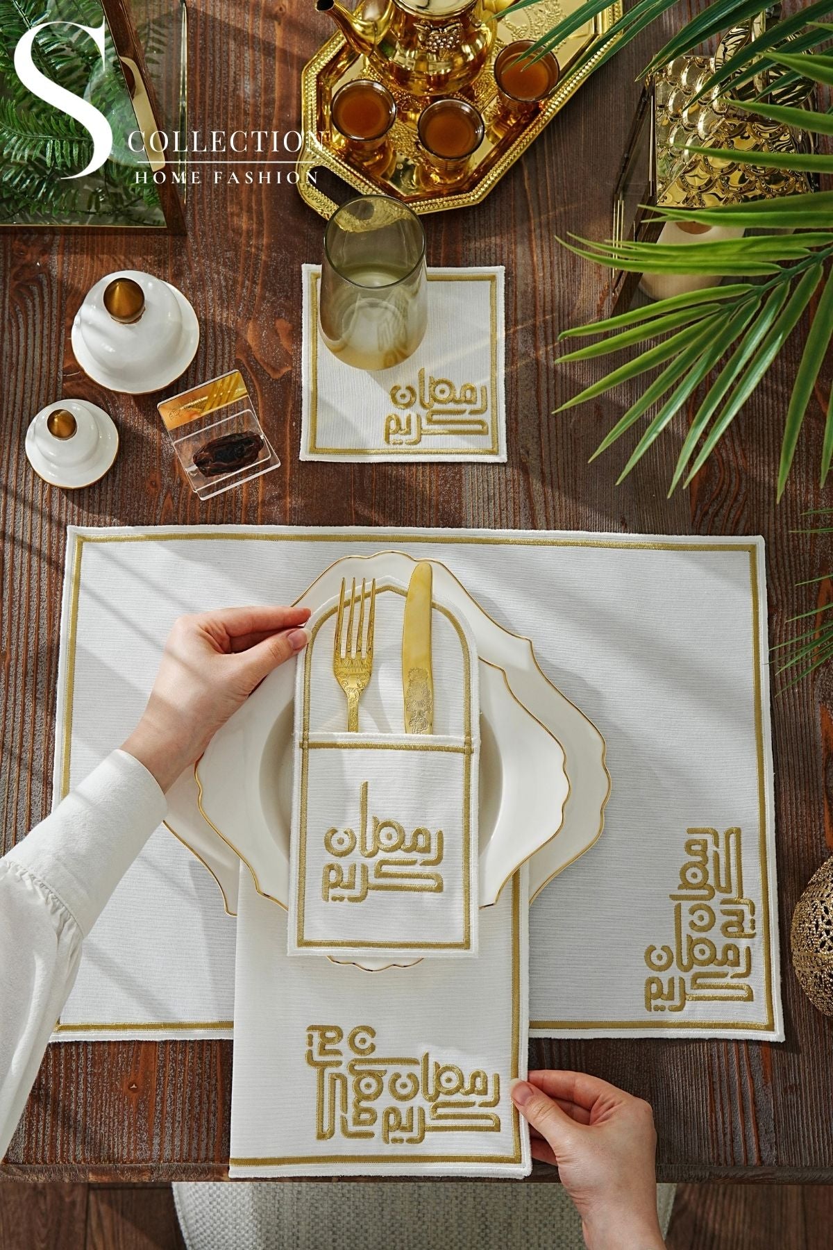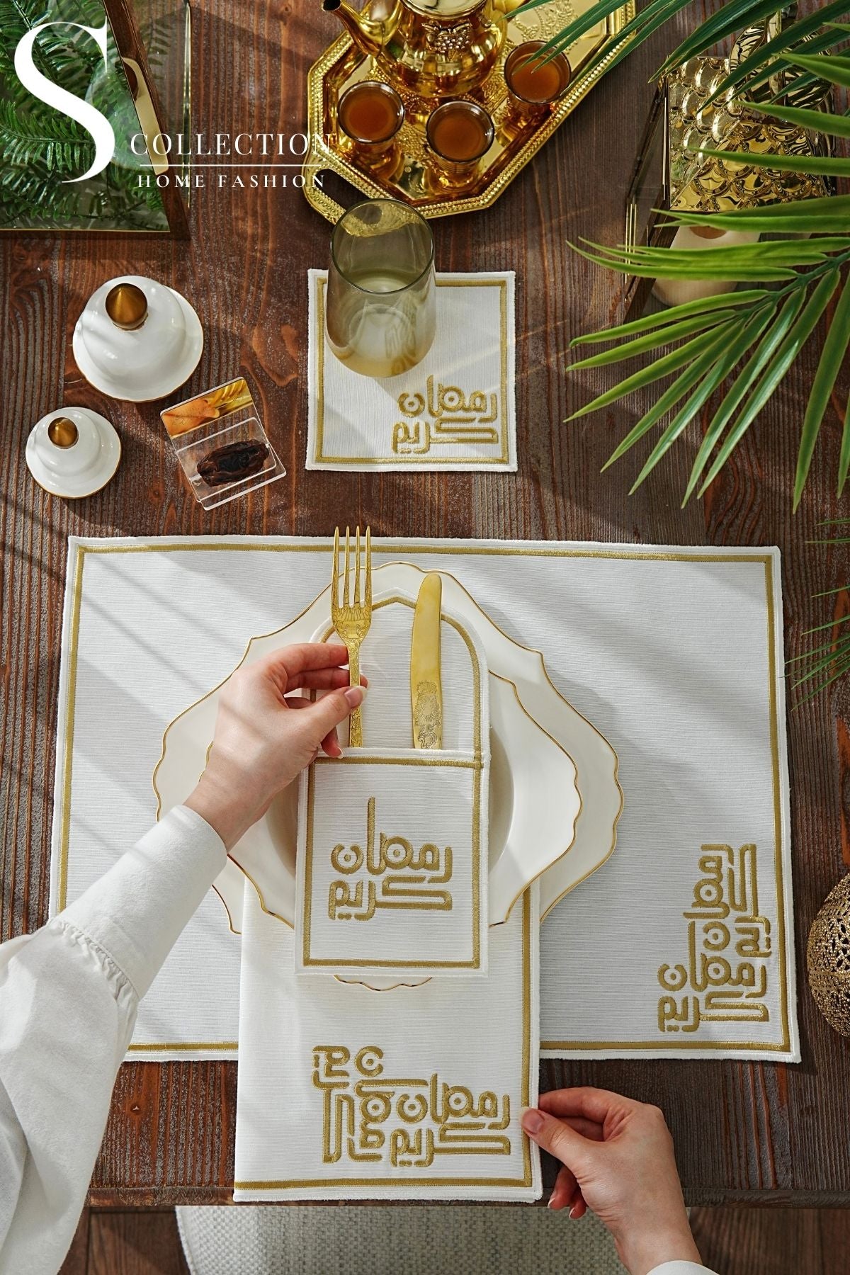 Ramadan Classic Design Gold Placemat Set - Waterproof Fabric - 6 Persons - 24 Pcs. Full Set