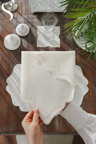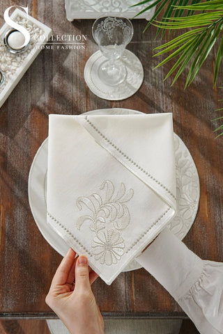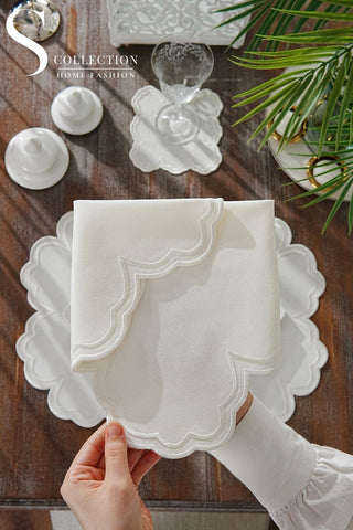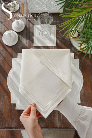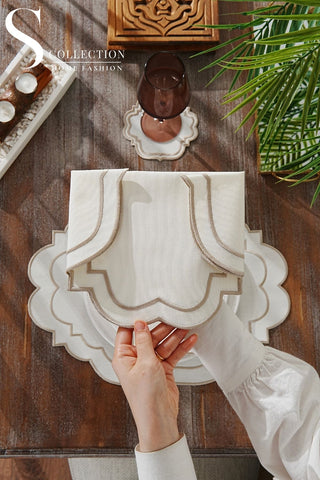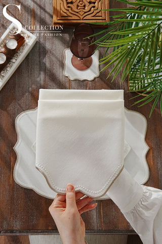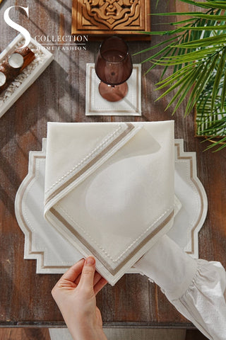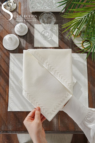 Graceful Off White Design Placemat Set - Waterproof Fabric - 6 Persons - 24 Pcs. Full Set