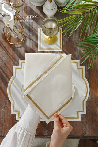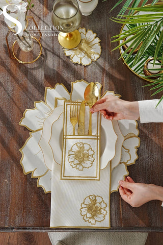 Graceful Gold Design Placemat Set - Waterproof Fabric - 6 Persons - 24 Pcs. Full Set
