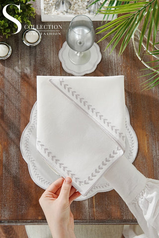Leafy Allure Silver Design Placemat Set - Waterproof Fabric - 6 Persons - 24 Pcs. Full Set