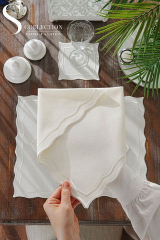 Cloud Design Off White Placemat Set - Waterproof Fabric - 6 Persons - 24 Pcs. Full Set