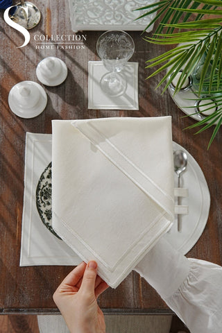 Tansy Off White Design Placemat Set - Waterproof Fabric - 6 Persons - 24 Pcs. Full Set