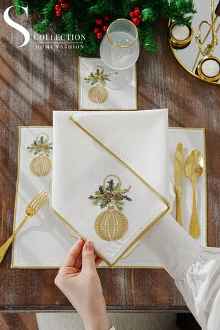 Christmas Jingle Bells Design Placemat Set - Waterproof Fabric - 2 Persons - 6 Pcs. Set