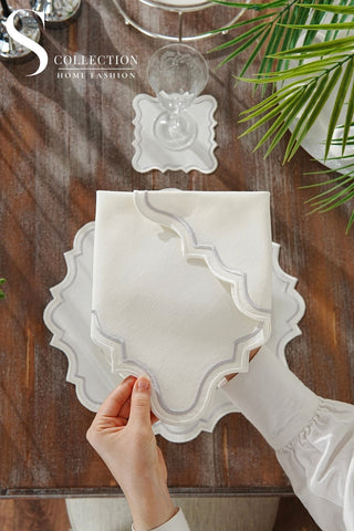 Graceful Off White Design Placemat Set - Waterproof Fabric - 6 Persons - 24 Pcs. Full Set