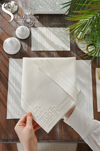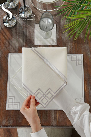 Classy Off White Design Placemat Set - Waterproof Fabric - 6 Persons - 24 Pcs. Full Set
