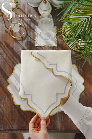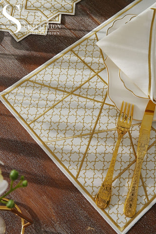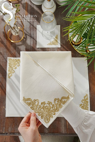 Graceful Gold Design Placemat Set - Waterproof Fabric - 6 Persons - 24 Pcs. Full Set