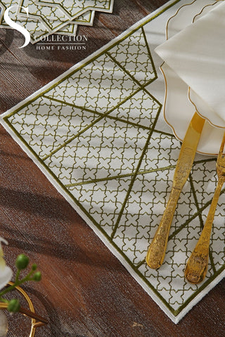 Rimal Olive Design Placemat Set - Waterproof Fabric - 6 Persons - 18 Pcs. Full Set