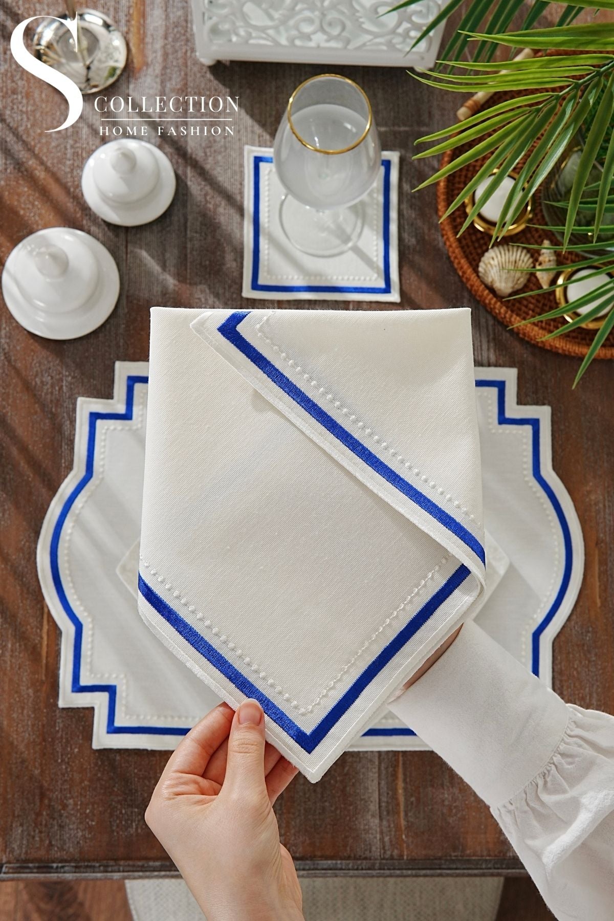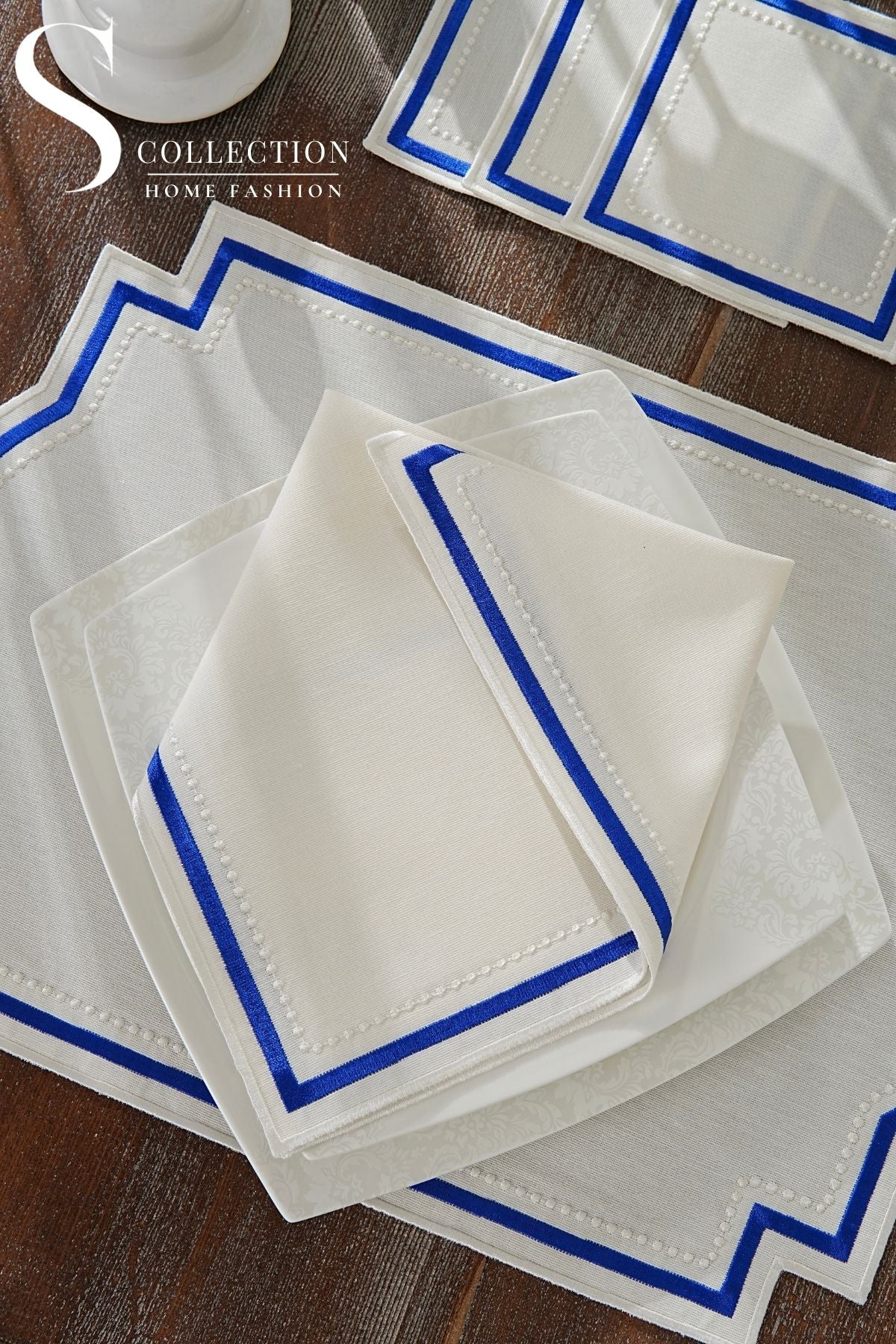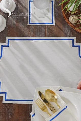 Graceful Navy Blue Design Placemat Set - Waterproof Fabric - 6 Persons - 24 Pcs. Full Set