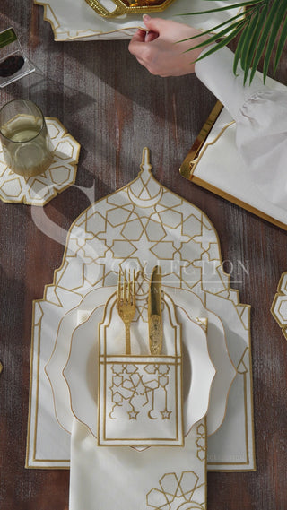 Elevate your Ramadan dining experience with our meticulously crafted 26-piece placemat set, designed to bring elegance and harmony to your table.