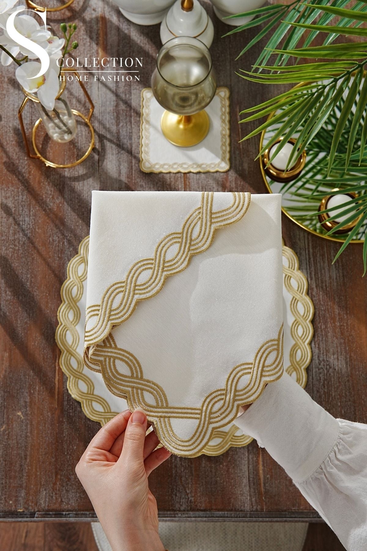 Ocean Braid Gold Design Placemat Set - Waterproof Fabric - 6 Persons - 24 Pcs. Full Set