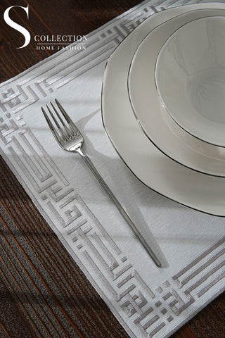 Ramadan Qubba Design Silver Placemat - Waterproof Fabric - 12 Persons - 12 Pcs.