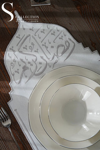 Ramadan Design Khair wa Barakah Placemat- Silver Embroidery - Waterproof Fabric - 12 Pcs.