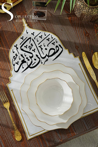 Ramadan Qubba Design Gold Placemat - Waterproof Fabric - 12 Persons - 12 Pcs.