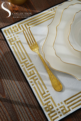 Ramadan Design Khair wa Barakah Placemat- Gold and Black Embroidery - Waterproof Fabric - 12 Pcs.