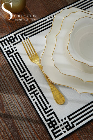 Ramadan Design Khair wa Barakah Placemat- Black Embroidery - Waterproof Fabric - 12 Pcs.