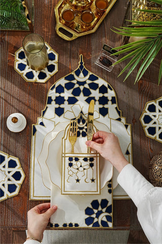 Ramadan Dome Design Navy and Gold Placemat Set - Waterproof Fabric - 6 Persons - 24 Pcs. Full Set
