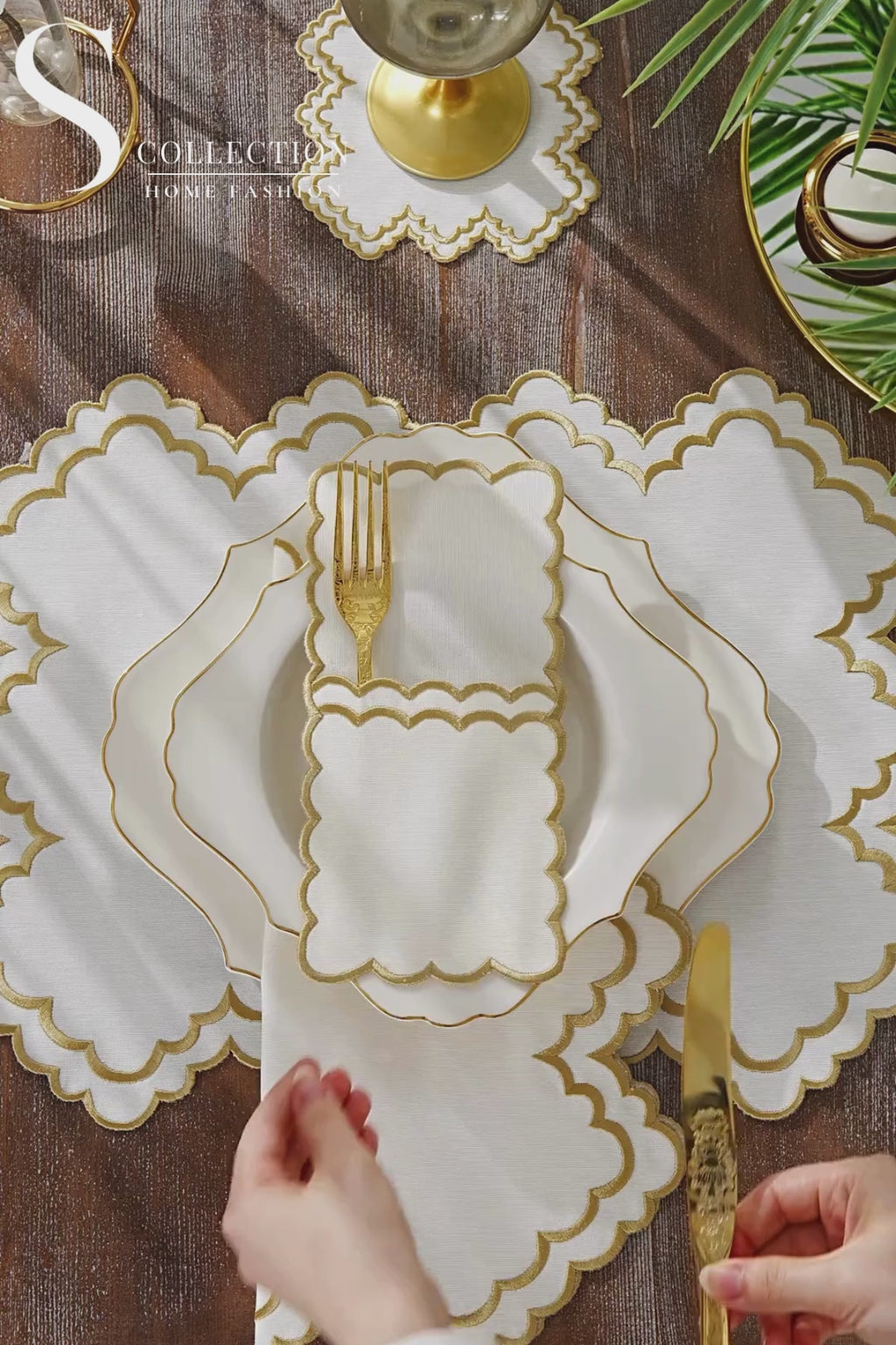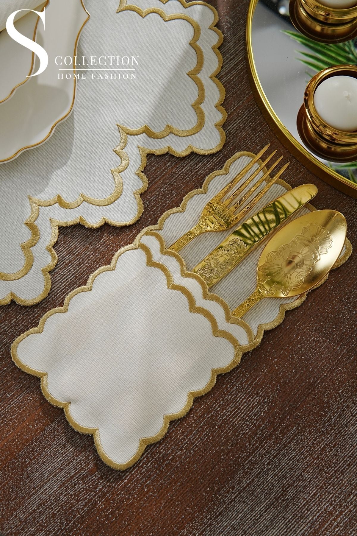 Rosaline Gold Design Placemat Set - Waterproof Fabric - 6 Persons - 24 Pcs. Full Set
