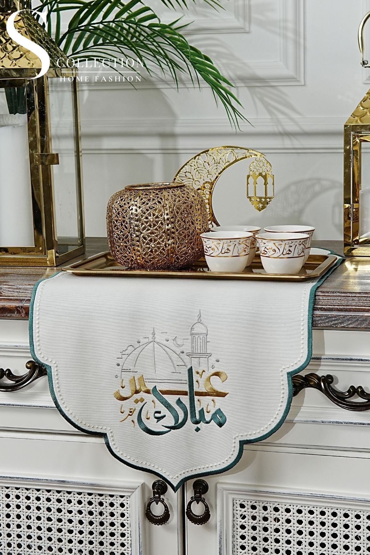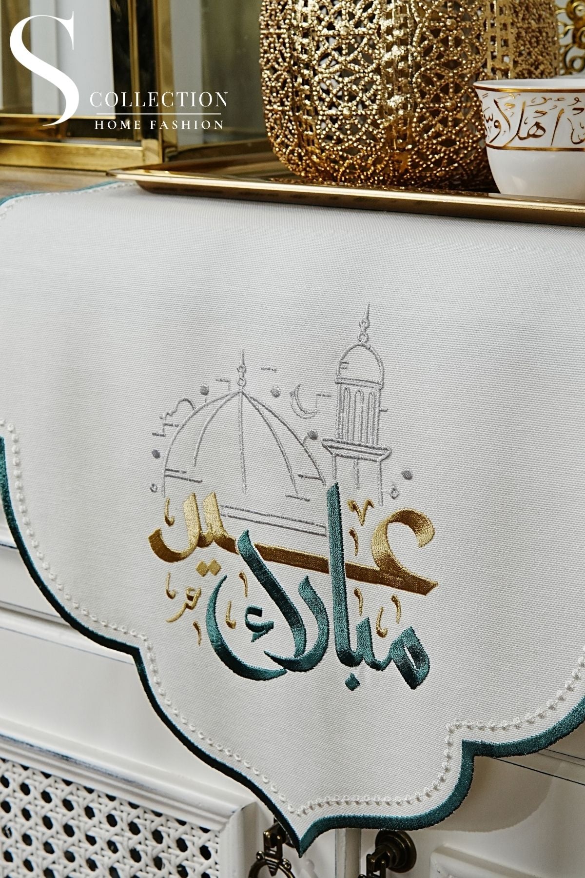 Eid Mubarak Mosque Design Runner - Waterproof Fabric - Multicolored Embroidered