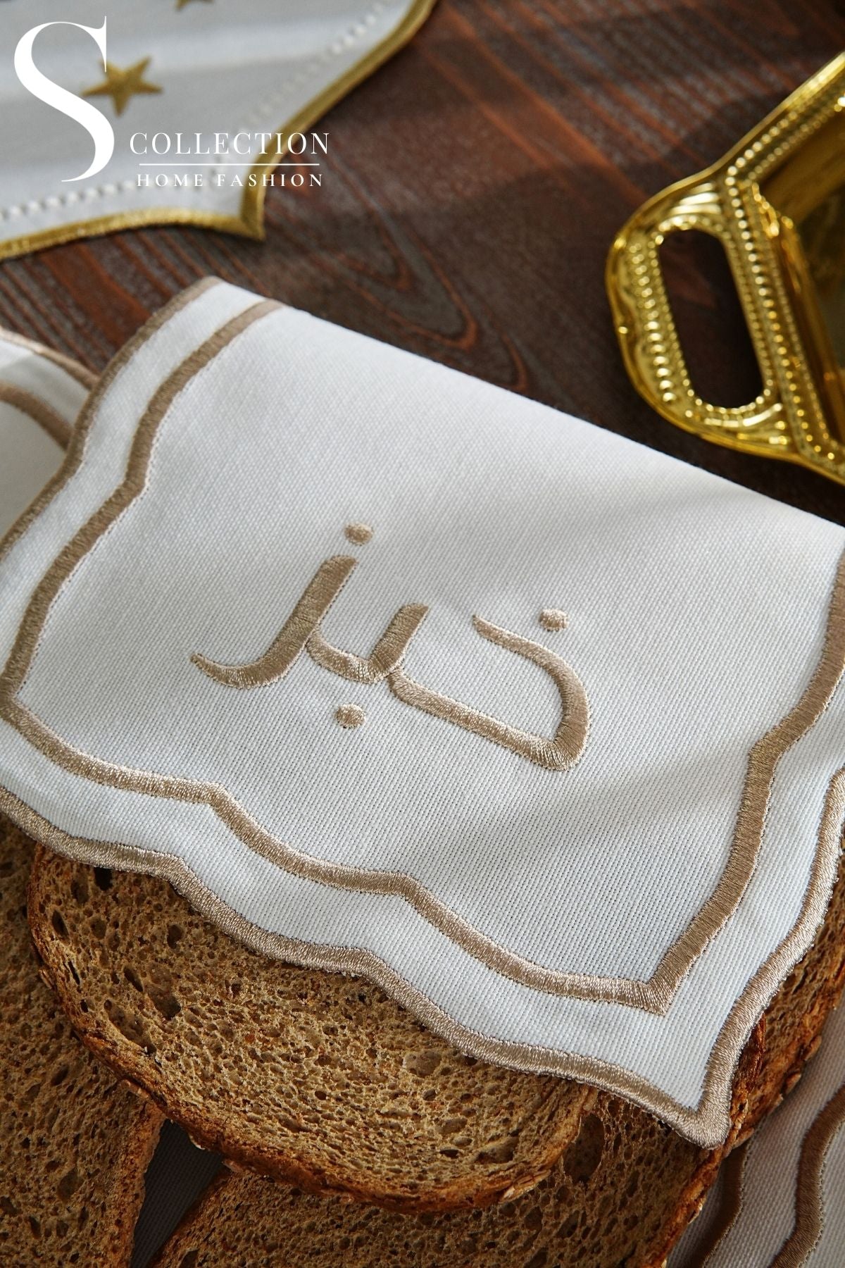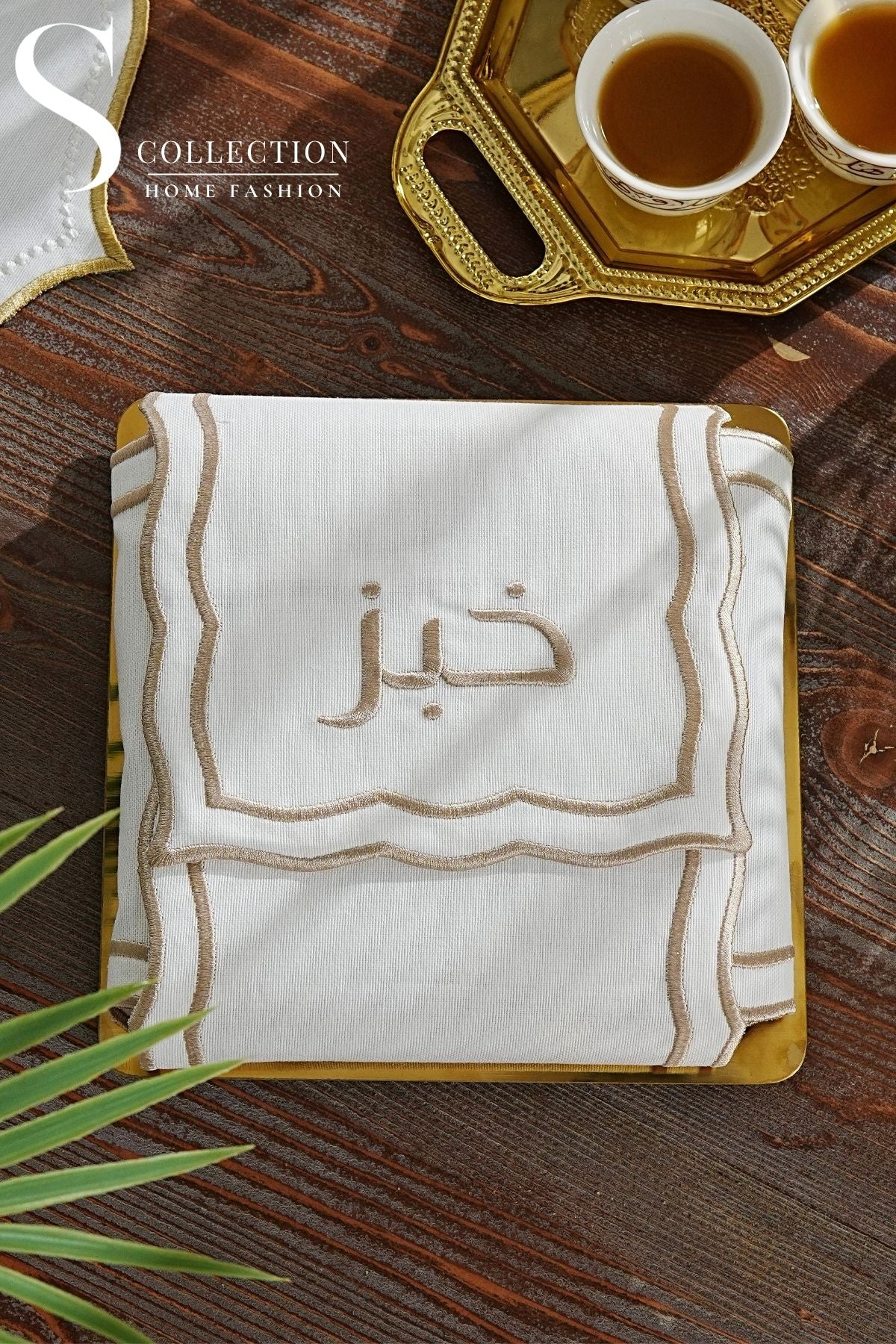 Leo Design Bread Basket Napkin - Waterproof Fabric - Cappucino Embroidered